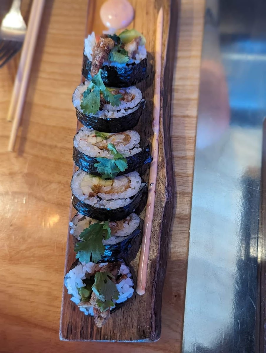 One of the standout items on the menu is the sushi. The rolls are crafted with care, and the freshness of the fish is evident in every bite. For instance, the “Oysters Rockefeller” roll, a fusion of rich, briny oysters with crispy tempura and a creamy sauce, is a crowd favorite. If you're a fan of spice, their "Spicy Tuna" roll won't disappoint, offering just the right amount of heat alongside the coolness of the avocado and the crunch of sesame seeds.