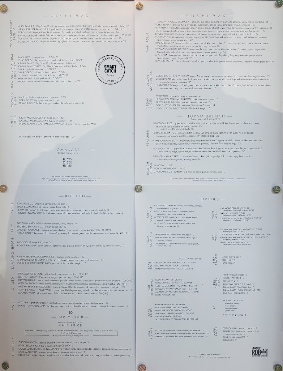 When you step into Lucky Robot Menu, located at 1303 S Congress Ave, Austin, TX, you’re in for a treat that’s both playful and creative. This quirky spot offers an exciting fusion of traditional Japanese flavors with a modern twist, making every dish an adventure for your taste buds. Whether you're in the mood for a fresh sushi roll or a hearty bowl of ramen, there's something here to satisfy every craving. You’ll find a variety of options, from light bites to filling entrees, all expertly crafted with fresh ingredients. The vibrant and unique menu blends bold flavors and classic techniques, creating an unforgettable dining experience. The atmosphere here is as fun as the food itself, with every meal offering a little something extra. Whether you’re dining with friends or enjoying a solo outing, the Lucky Robot Menu has a dish for every occasion.